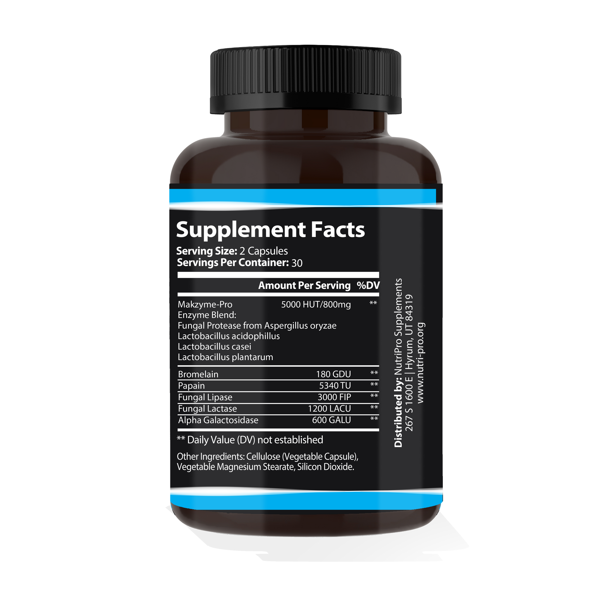Unlock optimal digestion with our powerful Digestive Enzyme Complex! Formulated with a unique blend of naturally sourced enzymes. Each serving features a potent combination of Bromelain, Papain, and a variety of beneficial probiotics, including Lactobacillus acidophilus and Lactobacillus plantarum. This enzyme blend supports the breakdown of proteins, fats, and carbohydrates, promoting efficient digestion and nutrient absorption.