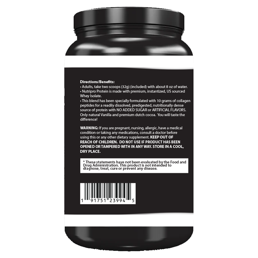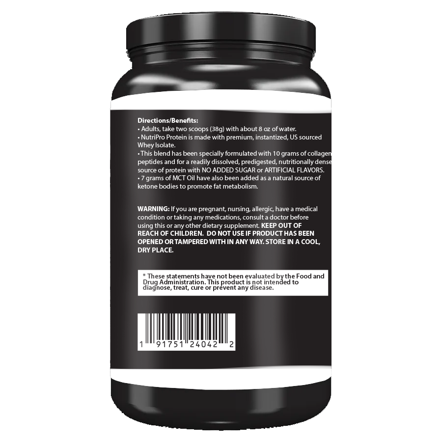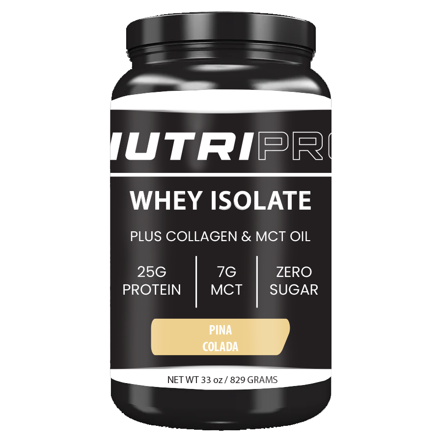 Elevate your wellness routine with Nutripro Instantized Whey Isolate & Clear Collagen Blend! This powerhouse formula combines premium whey isolate for muscle support with high-quality, clear collagen for connective tissue and joint health. Free from added sugars, artificial flavors, and dyes. Coconut flavored protein is flavored with natural MCT oil for an incredibly smooth flavor and all the health benefits of MCTs. It’s the perfect guilt-free shake. Enjoy a clean, refreshing taste while nourishing your body from the inside out.